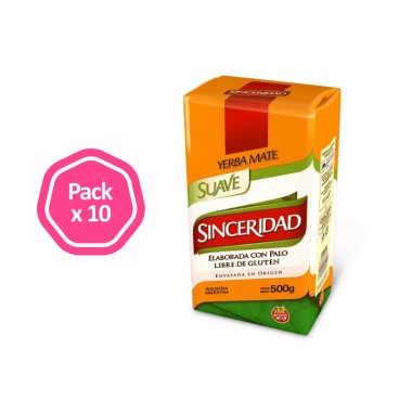 PACK DE 10 UNIDADES X 500GR. YERBA MATE SINCERIDAD SUAVE.